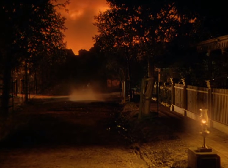 This view, looking down the street as Rhett and Scarlet drive away with Melly in the wagon is looking down the same street that Atticus Finch walks down in To Kill a Mockingbird – His front porch is also Andy Taylor’s front porch … which kind of works, doesn’t it?