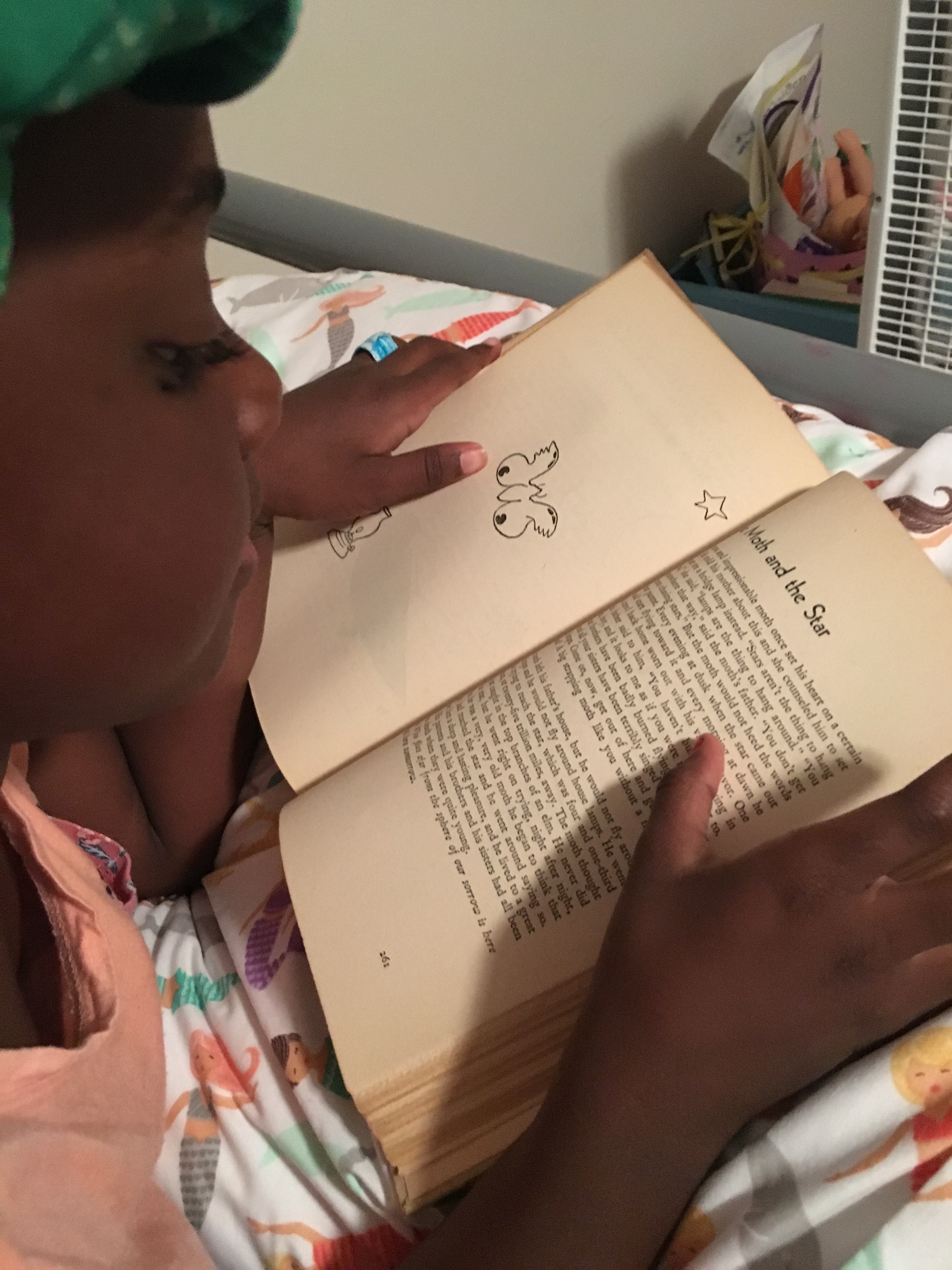 Azaria said she would like a story but she grabbed the book and read to me.