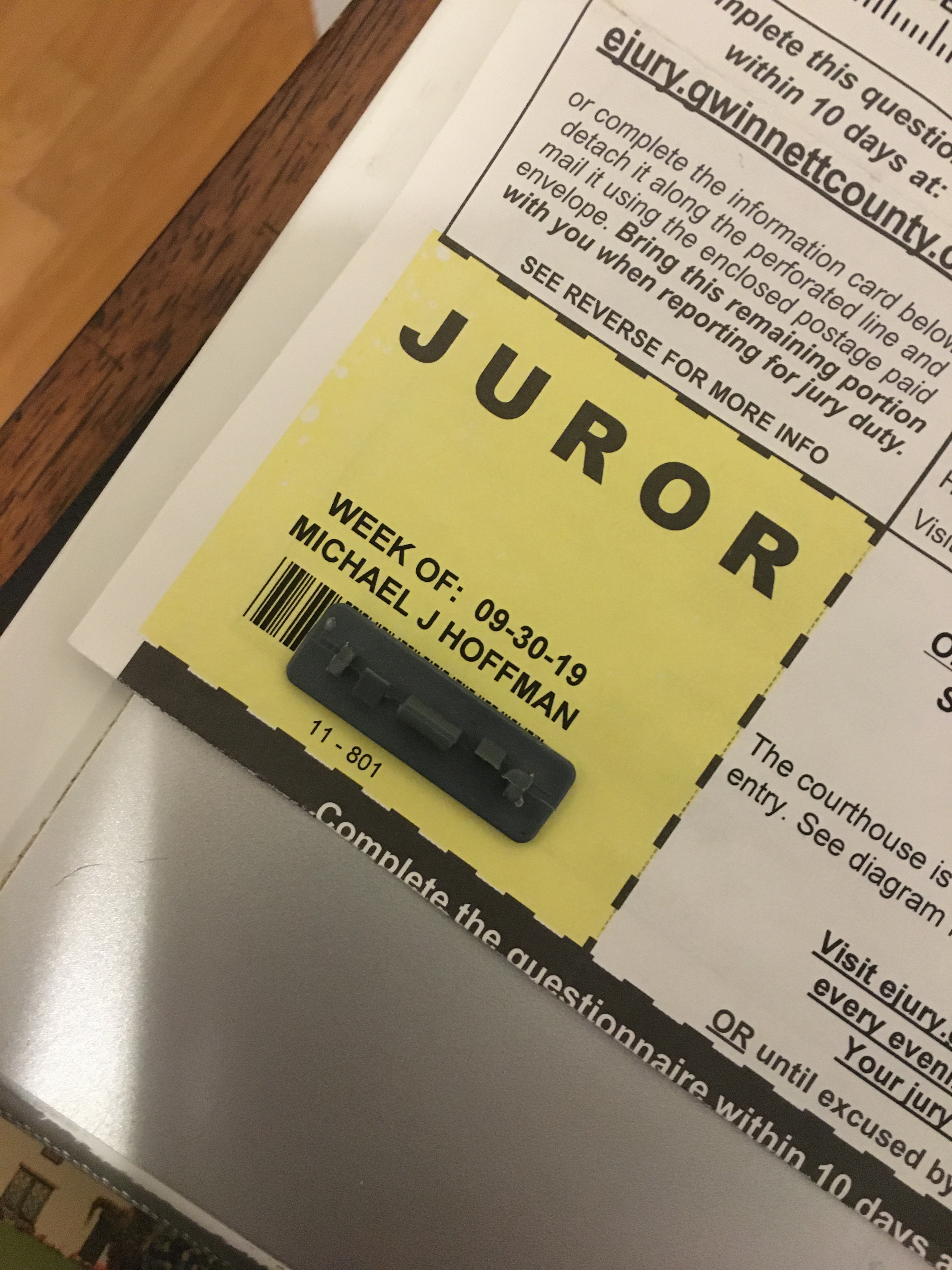 October 1 – my jury duty Mike Hoffman Life October 1, 2019 1 Minute My jury duty So far, turning us into 12 angry people Share this: Click to email a link to a friend (Opens in new window) Email Click to print (Opens in new window) Print Click to share on Facebook (Opens in new window) Facebook Click to share on X (Opens in new window) X Click to share on LinkedIn (Opens in new window) LinkedIn Like Loading... Related Published October 1, 2019