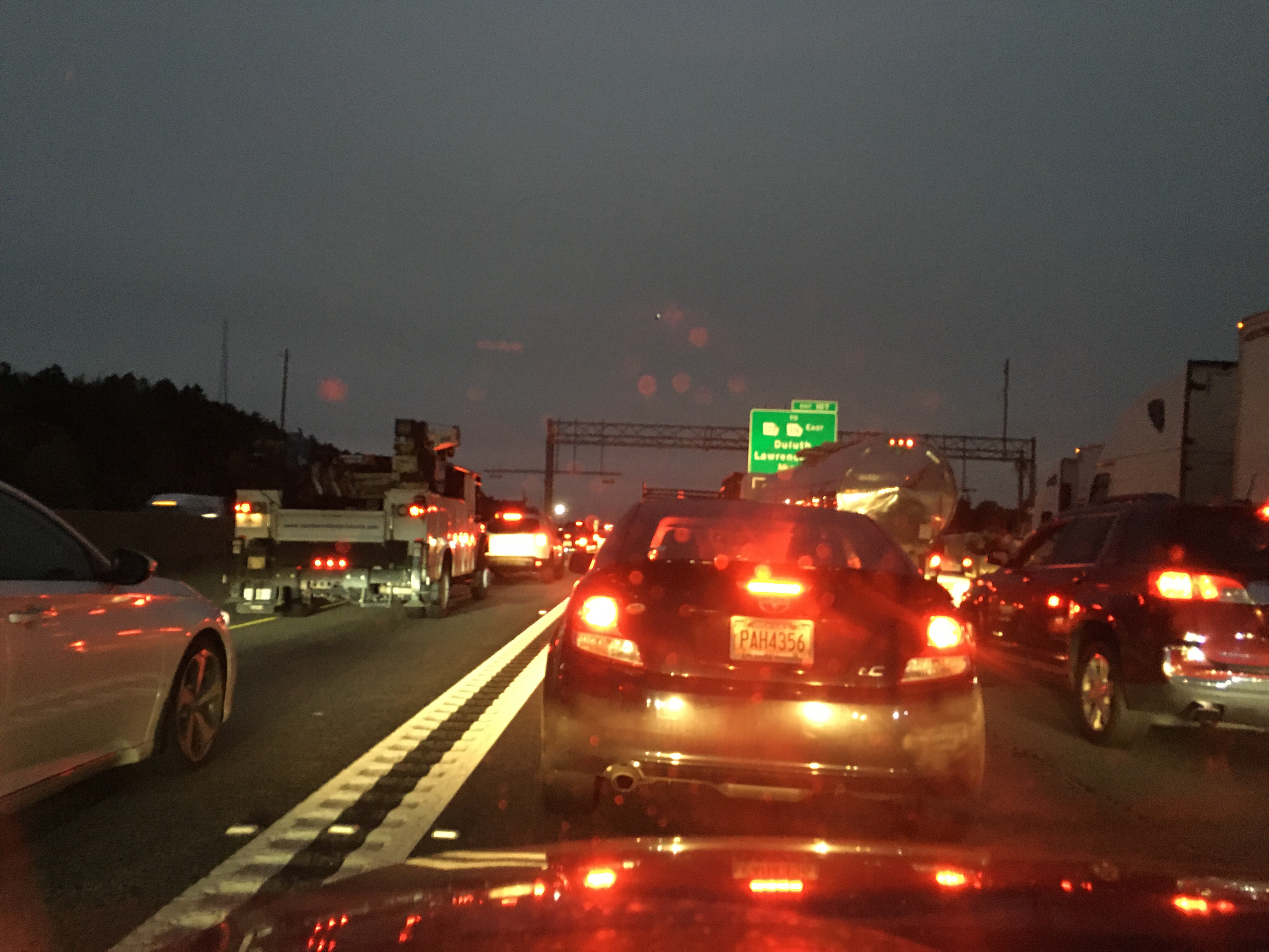 Minutes after merging onto I85 Southbound to midtown Atlanta, traffic started slowing down and then stopped.