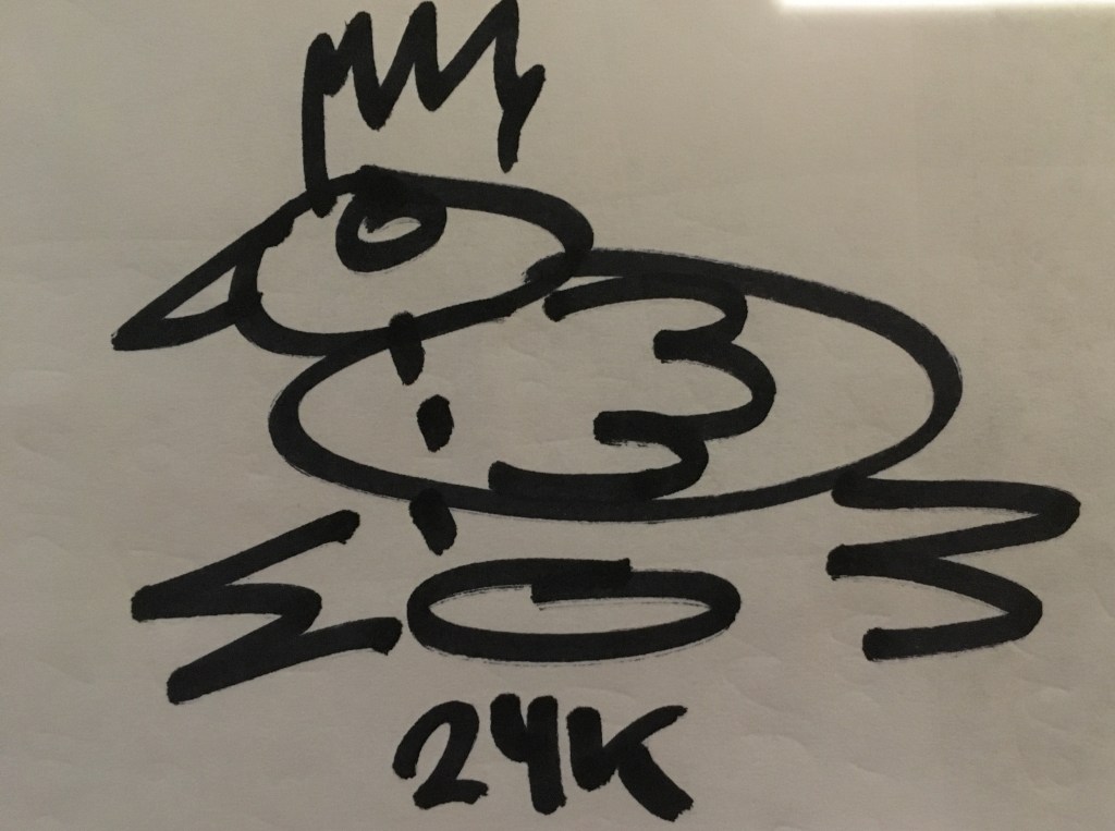 The hen is eyeing (with a dotted line) that 24 Karat golden egg.