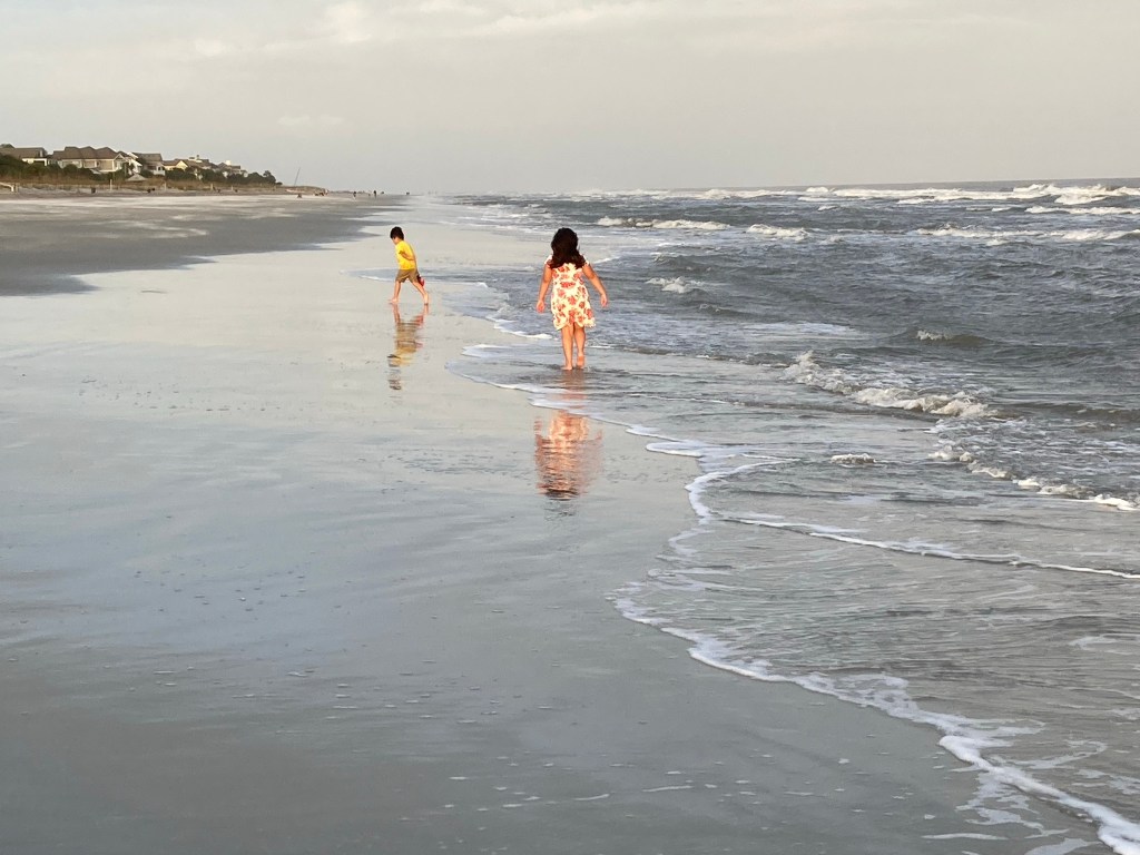 see beach with kids eyes wider, wetter, sandier flatter than I see
