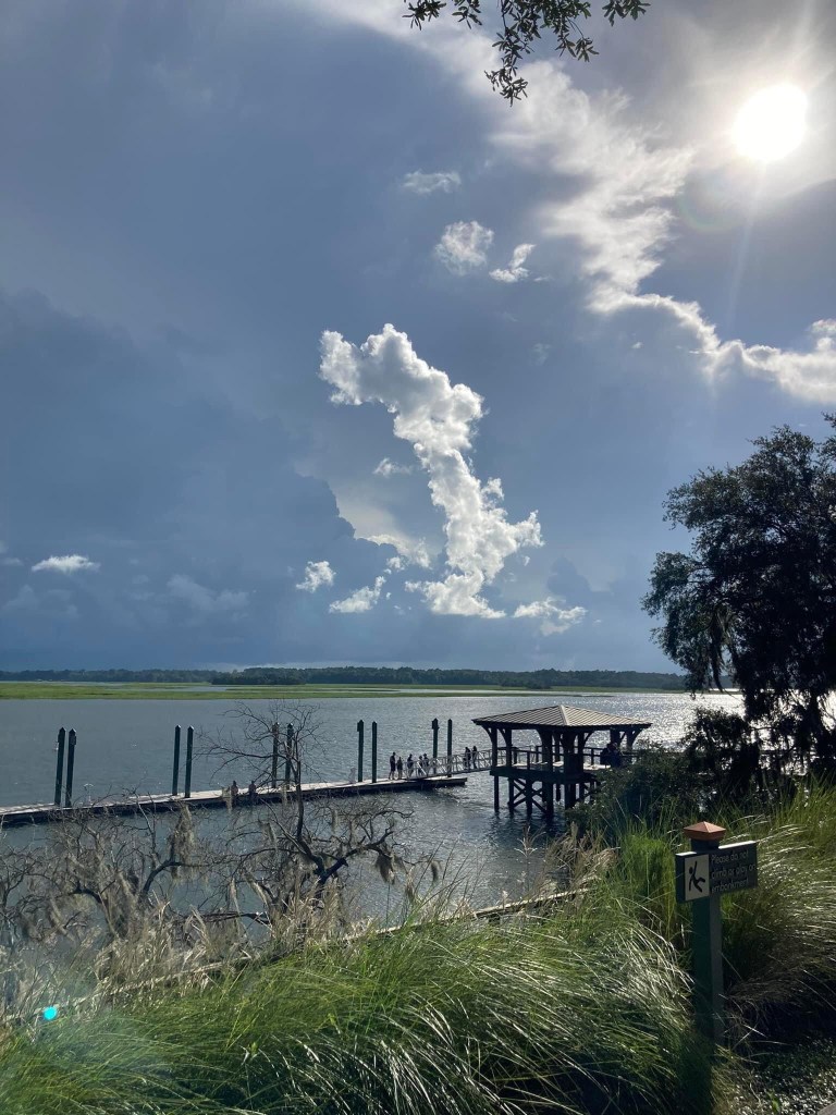 Adapted from then line: “He looked at the sky and saw the white cumulus built like friendly piles of ice cream and high above were the thin feathers of the cirrus against the high September sky.” in the novel, The Old Man and the Sea by Ernest Hemingway, Charles Scribner’s Sons, 1952.