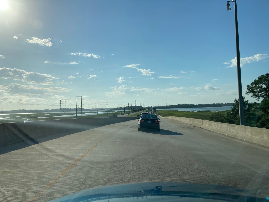 On the other side of the river, the road entered an enormous swamp some thirty miles in width, with very few other cars on the road. For a while the lack of any traffic caused a vertigo as if I had been abandoned.