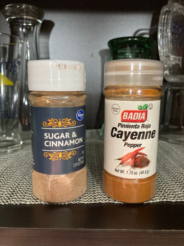 sugar cinnamon cayenne red pepperon toast mistake this morning