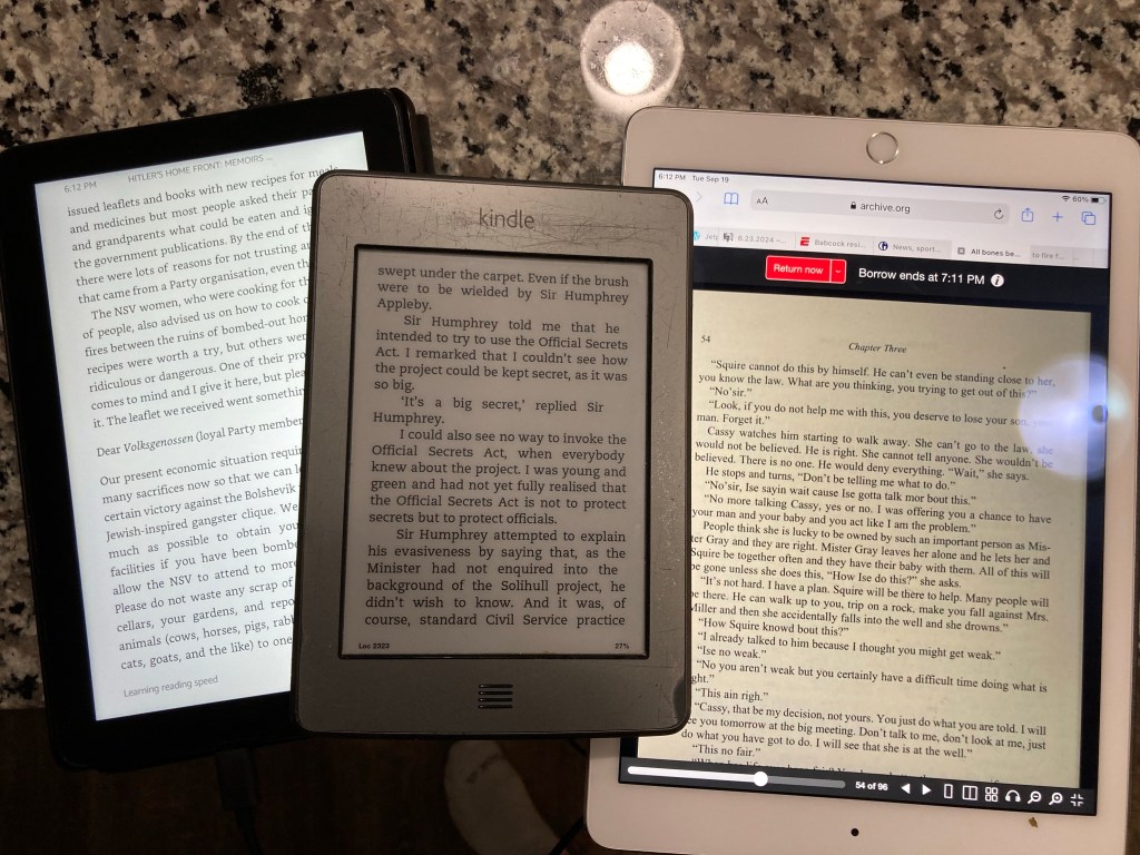 I have two kindles, a handheld and a tablet device all logged into different online book resources.