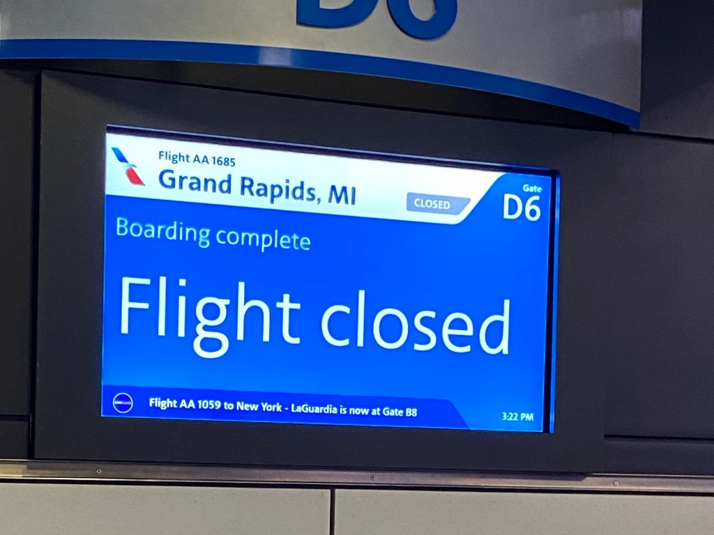 So my wife got another flight to Chicago that would connect with another flight.
