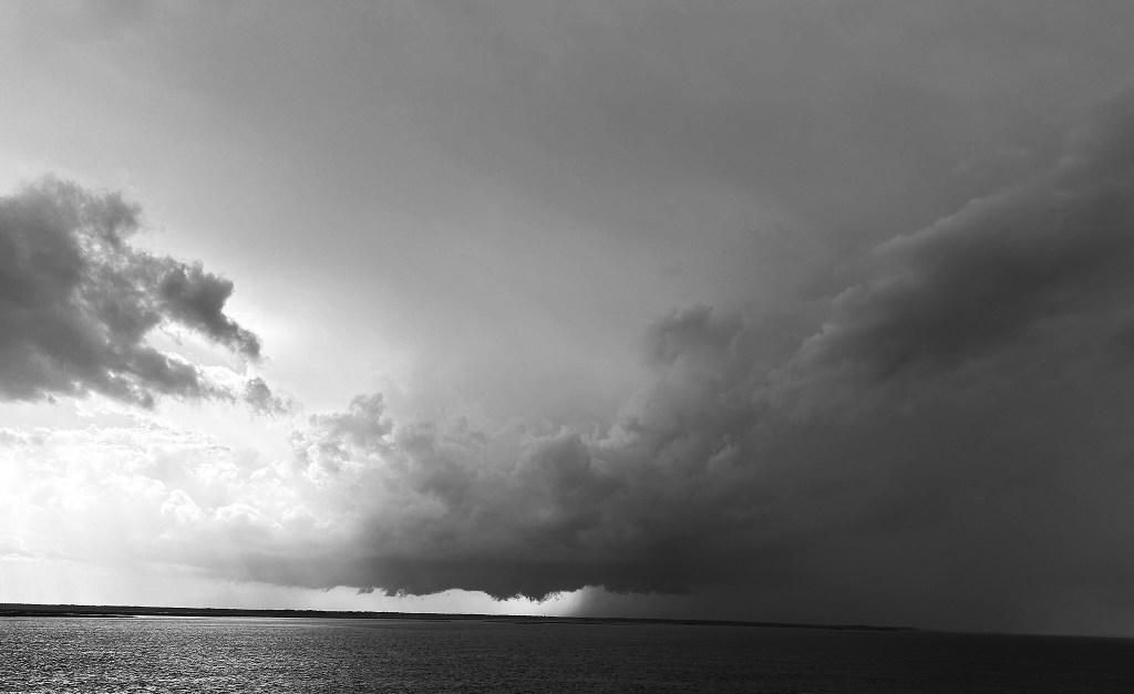 Storm clouds over Broad Creek from the Robert Smalls Bridge in Beaufort County, SC