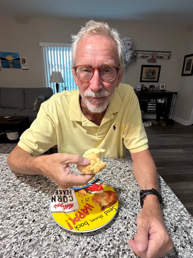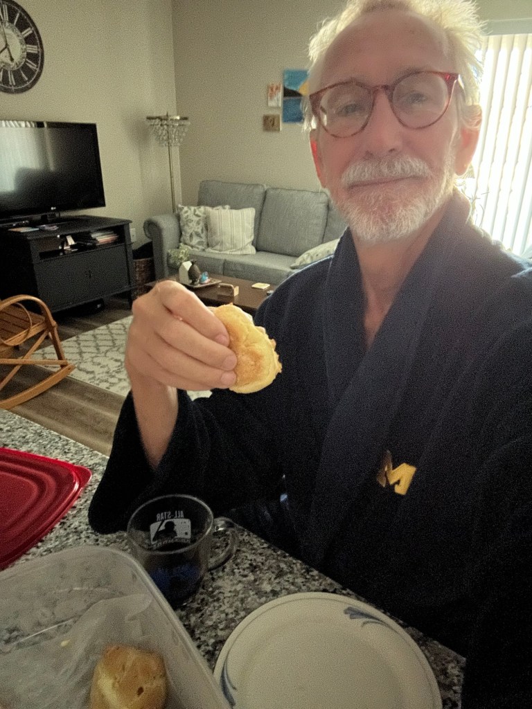 Home and candles stuck into a cream puff with some of the kids on video call, I got to hear Happy Birthday sung as only my family can … and then it was time for Cream puffs! Cream puffs!