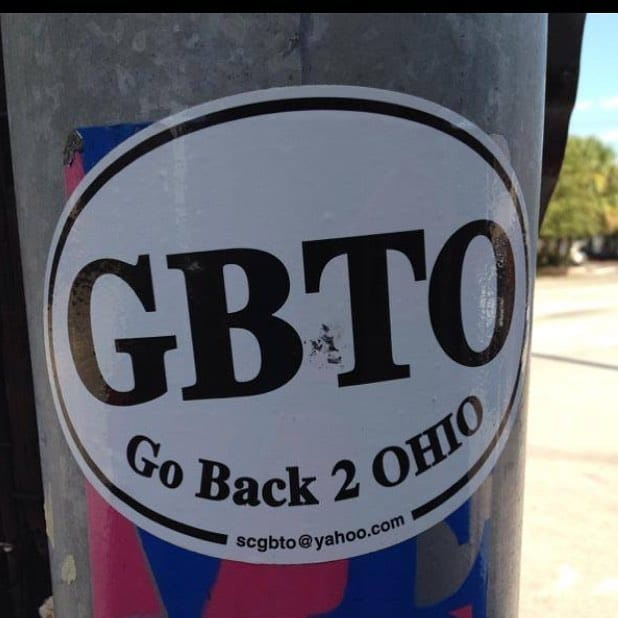 Up the coast a bit in Charleston, SC, then even have a MEME of GBTO or Go Back to Ohio.