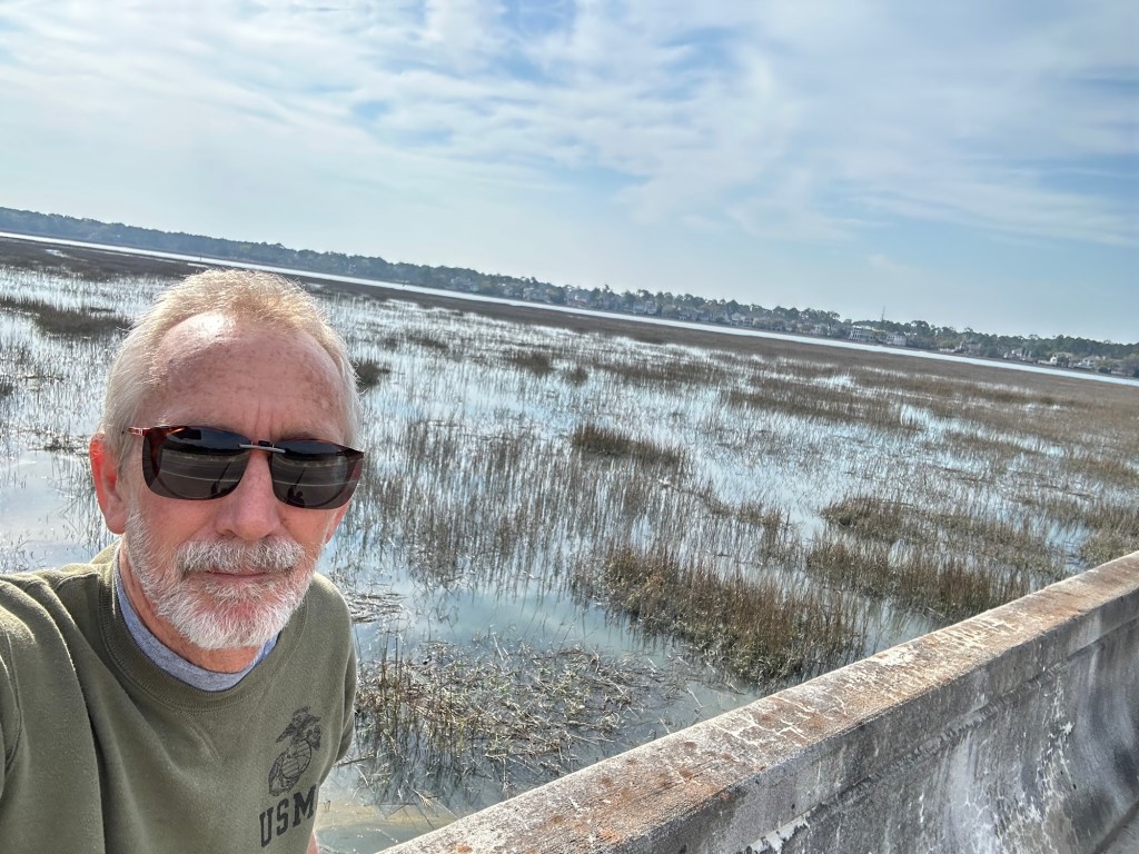 Now I ride my bike to the edge of the marsh.