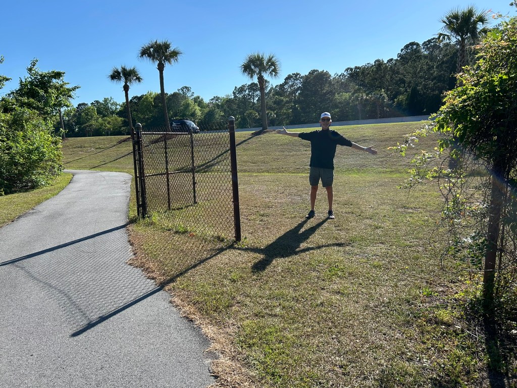 The other day, I looked a little closer and noticed we weren’t walking through a gateway in the fence along the parkway but through a fence that seems to have been set up so there could be a gate.