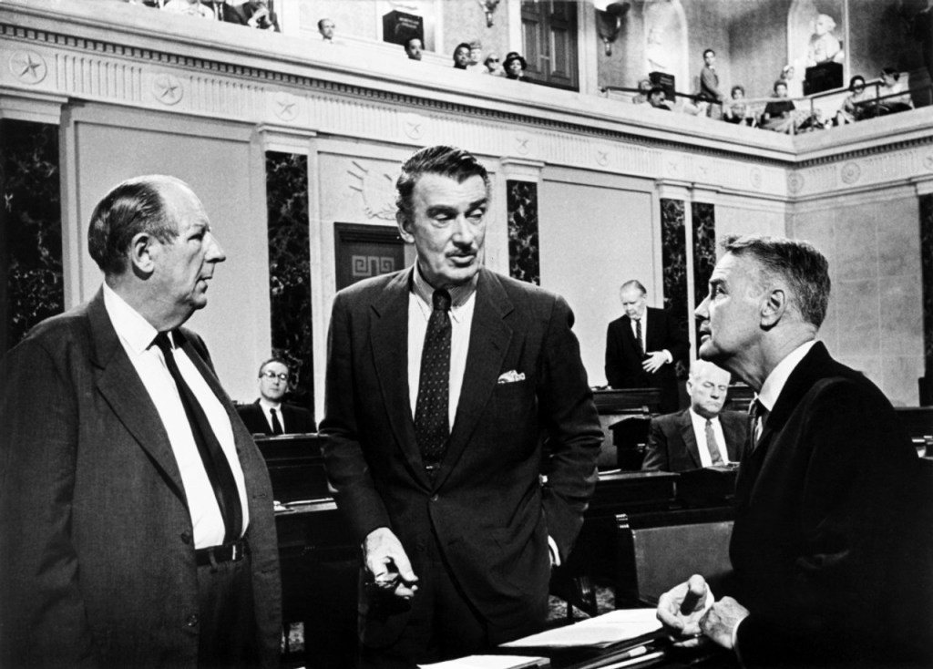 According to Wikipedia, “Advise and Consent is a 1959 political fiction novel by Allen Drury that explores the United States Senate confirmation of controversial Secretary of State nominee Robert Leffingwell, whose promotion is endangered due to growing evidence that the nominee had been a member of the Communist Party. The chief characters’ responses to the evidence, and their efforts to spread or suppress it, form the basis of the novel.”