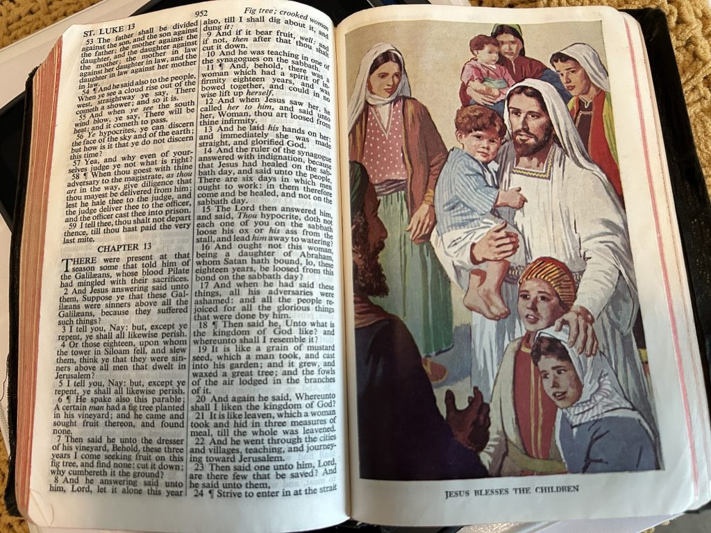 One of those illustrations was captioned Jesus Blesses the Children.
