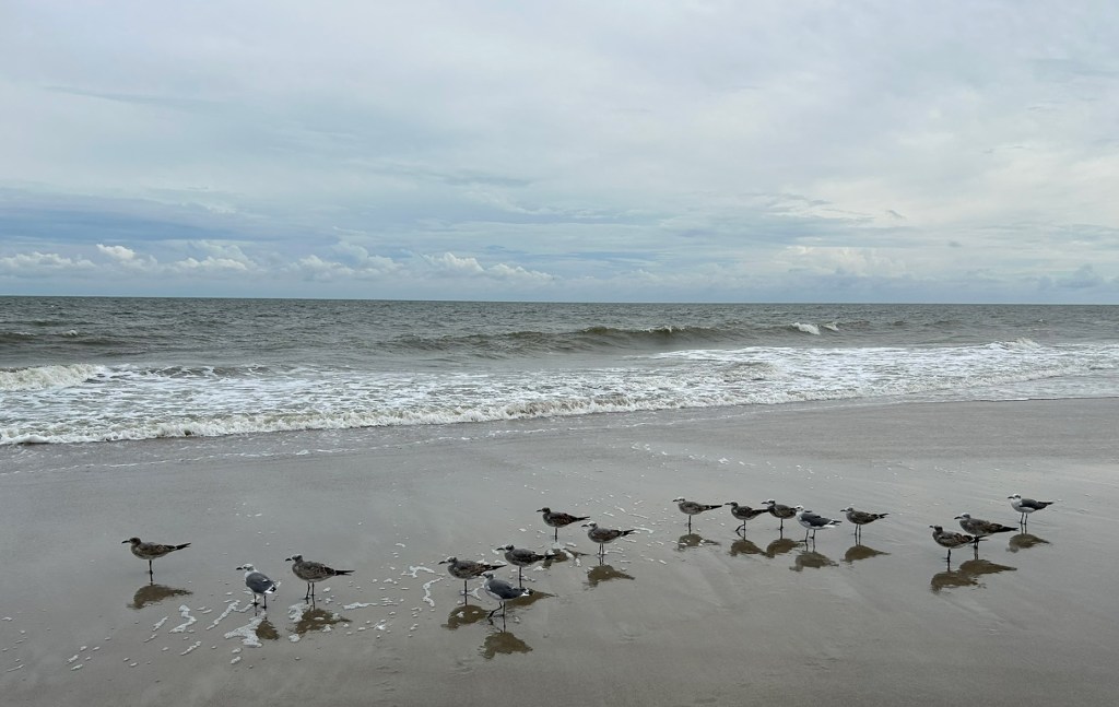Laughing Gulls on the shore of Hilton Head Island with Imelda just over the horizon – September – 2025