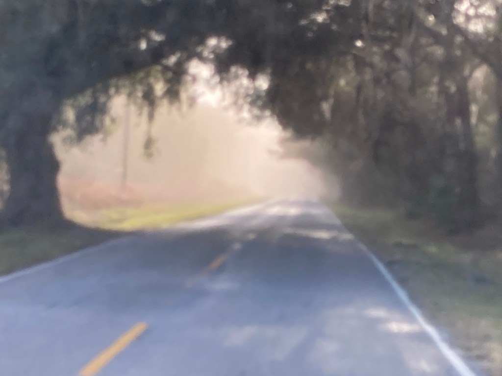 Tunnels through the live oaks and Spanish moss with dust from the strawberry fields cloud the sun.