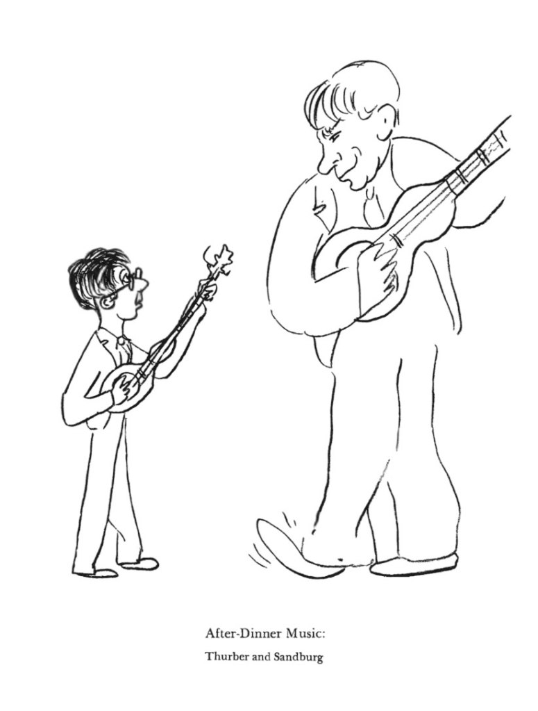 Mr. Thurber also remembered the evening singing with Sandburg with a drawing.
