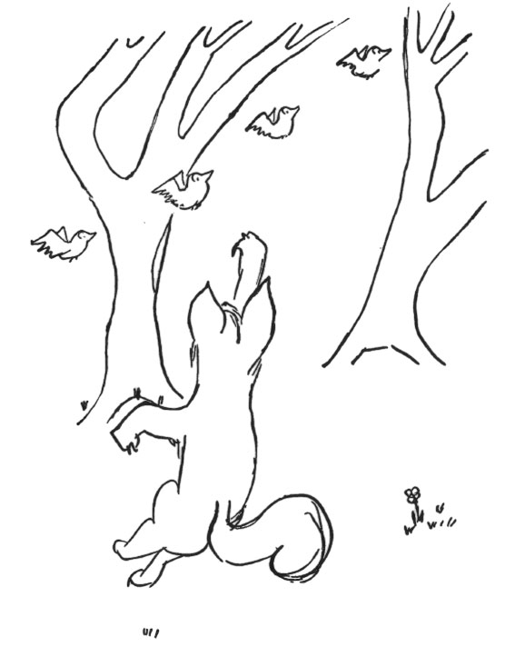 When all the geese and ducks had been civilized, and there was nothing else left to eat, the foxes once more turned their attention to the bird sanctuary. Their leader announced that there had once been foxes in the sanctuary but that they had been driven out. He proclaimed that Baltimore orioles belonged in Baltimore. He said, furthermore, that the orioles in the sanctuary were a continuous menace to the peace of the world. The other animals cautioned the foxes not to disturb the birds in their sanctuary. So the foxes attacked the sanctuary one night and tore down the fence that, surrounded it. The orioles rushes out and were instantly killed and eaten by the foxes.